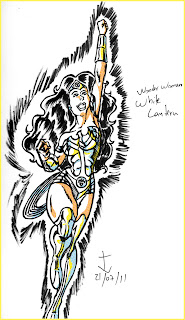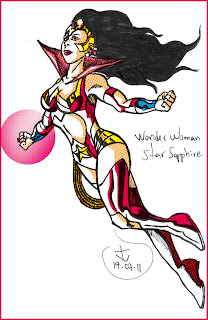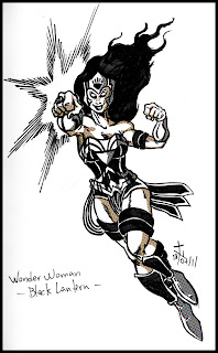 And here we have the three incarnations of Wonder Woman during the Blackest Night" crossover - As a Black Lantern, as a Star Sapphire and as a White Lantern, respectively.